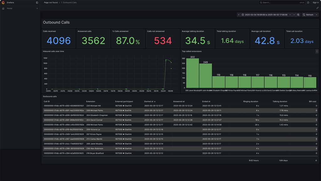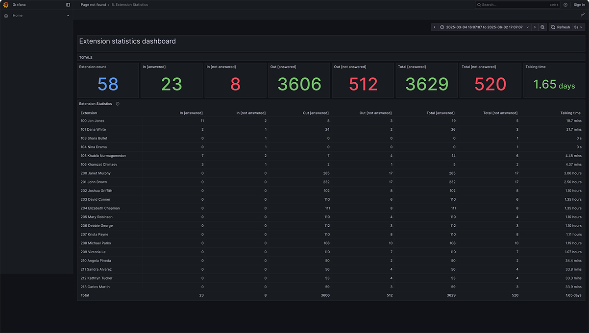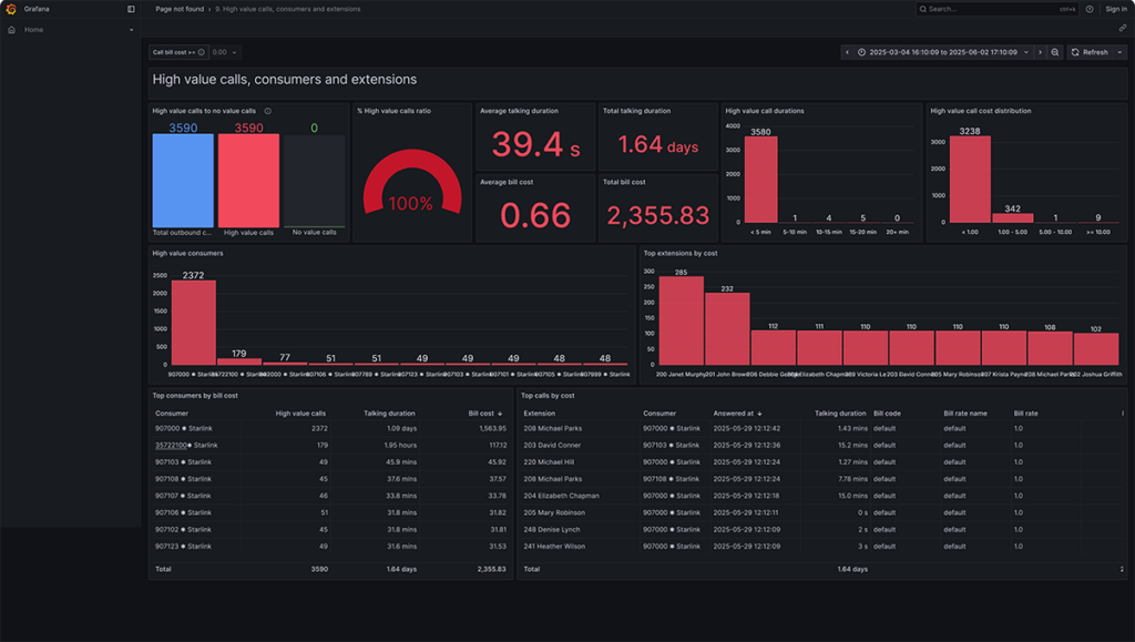 AI-powered insights elevate standard reports. Track sentiment and performance trends across logs, extensions, ring groups, and queues