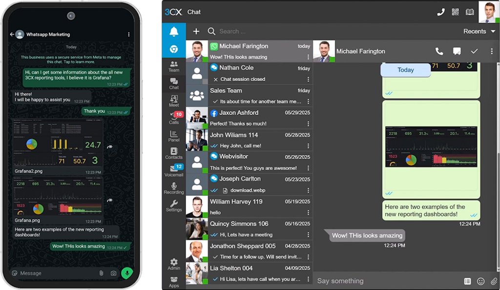 Yes, with 3CX apps for iOS, Android, and Windows, your team can manage WhatsApp messages, calls, live chat, and texts from anywhere.