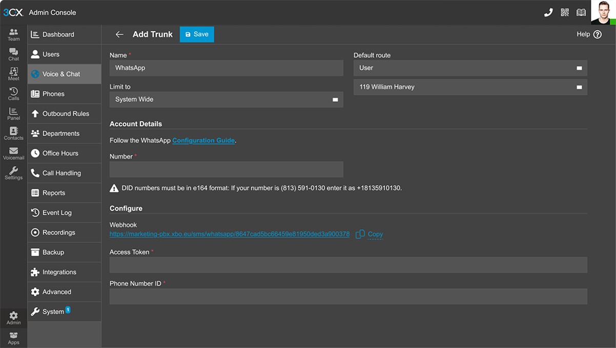 To get started you’ll need to have a WhatsApp business platform account setup with a dedicated number. It’s not possible to re-use your personal number. You’ll also need to follow the WhatsApp configuration guide carefully. Please remember that the setup process is controlled entirely by WhatsApp, so it may take some time. 3CX provides the tools to manage messages once your setup is complete.